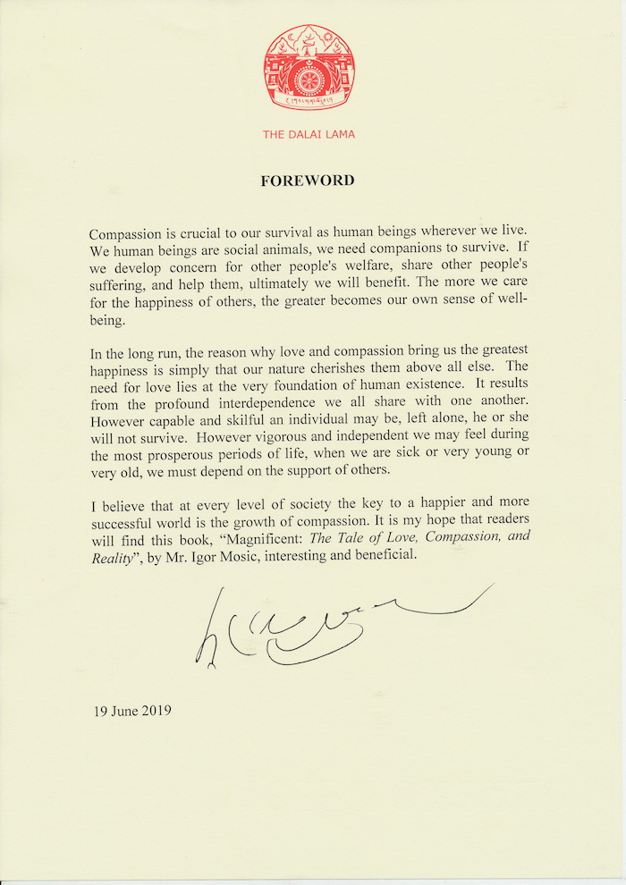 Vjerujem da je, na svakom nivou društva, ključ do sretnijeg i uspješnijeg života rast suosjećanja. Moja je nada da će čitateljima ova knjiga “Veličanstveno – priča o ljubavi, suosjećanju i realnosti” Igora Mošiča biti zanimljiva i korisna.